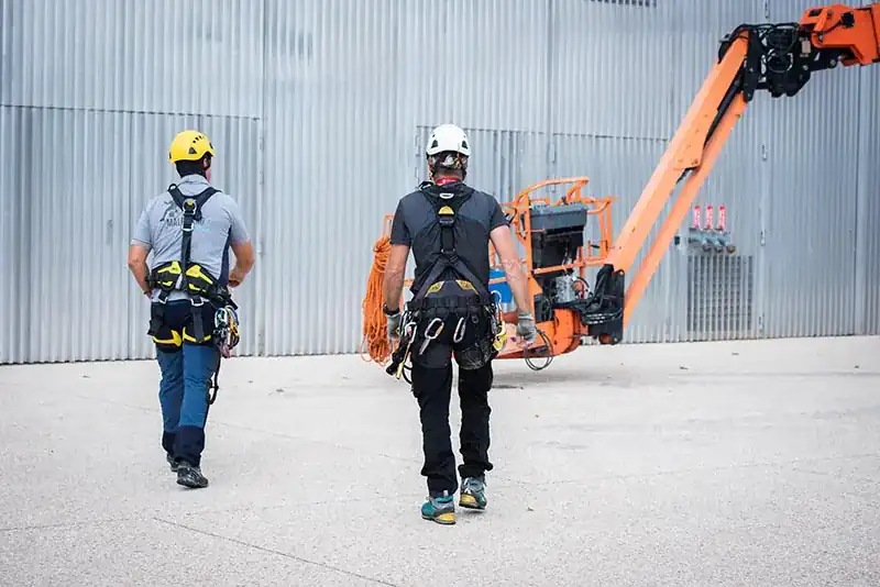 Réalisation de travaux en hauteur sur cordes : nettoyage, peinture, inspection. CQP Cordiste niveau 1 requis.